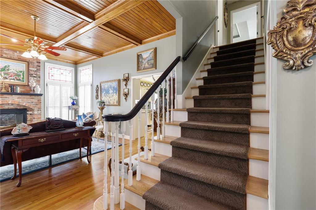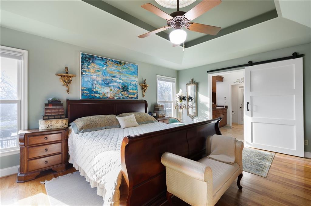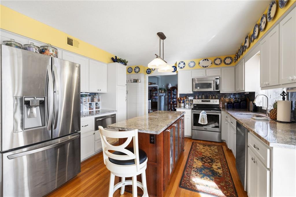If you want a home that supports your lifestyle and has investment potential, this master-crafted Northland residence is the rare exception! This home offers nearly 4,300sqft of space, starting with a gourmet chef’s kitchen featuring granite countertops, a large island, stainless appliances, and a warming oven for perfect hosting. The main floor flow is natural and unhurried, with high ceilings and a sun-drenched living room anchored by a classic fireplace and custom stained-glass accents. A dedicated office on this level provides the perfect retreat. Upstairs, you will find four large bedrooms, including an oversized primary suite with an expansive walk-in closet, a private skylight, and a heated tile bathroom floor. Another hard to find feature is the fully finished walkout basement that offers an impressive self-contained living suite. This is a complete second home with its own full kitchen, full bath, serving bar, and a large fifth bedroom. Whether for multi-generational living or potential rental income to offset your mortgage, this suite provides a massive financial advantage as a short-term rental, especially with the World Cup coming to Kansas City this summer. All fixtures, including the tankless water heater, are premium American Standard quality. Outside, you enter a private sanctuary that feels like your own park. This fully fenced English-garden retreat includes arbors, wrought iron, and three separate Trex decks. Situated just 25 minutes from both downtown Kansas City and the airport, this home is a true green-energy standout with owned solar panels and no remaining payments. While neighbors worry about utility rates, you will enjoy remarkably low overhead. From the quiet gardens to the HOA pool, every detail has been maintained with an obsession for quality. This is a rare property with immense space, beauty, and financial upside. Click "Contact Johnnie" today for more details and to schedule your private tour!